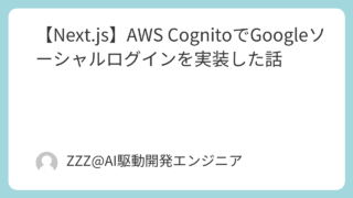 Next.js 【Next.js】AWS CognitoでGoogleソーシャルログインを実装した話 Next.js 14とAWS Cognitoを使ったGoogleソーシャルログインの実装方法を解説。Google Cloud Consoleの設定からCognito Hosted UIの統合、実際に遭遇した5つの問題と解決方法まで、実装のポイントを詳しく説明します。 2026.01.06 Next.js
